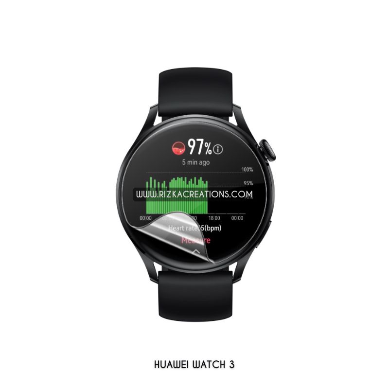 Premium Hydrogel Screen Protectors for Huawei Watch 3 by rizkaCreations.com. Each set of 6 pcs offers self-healing, superior shock absorption, and high touch sensitivity. Available in clear and matte finishes, with worldwide delivery for ultimate smartwatch protection..