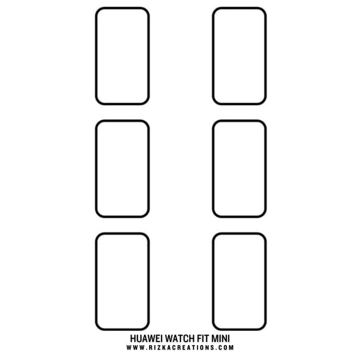 Each sheet you purchase from rizkaCreations.com contains six pieces of our premium Hydrogel protectors, providing you with a long-lasting supply for your Huawei Watch Fit mini. This generous quantity ensures you always have a fresh protector on hand, guaranteeing continuous defense for your watch’s display. By choosing our Hydrogel, you are opting for a modern, durable, and intelligent solution that not only protects your watch from the most common forms of damage but also preserves its original functionality and pristine appearance. We are proud to offer this superior product and we deliver world-wide, so you can have the best protection for your Huawei Watch Fit mini no matter where you are.