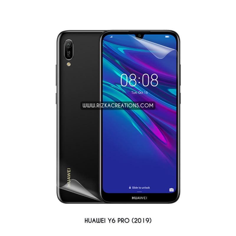 Shield your Huawei Y6 Pro (2019) with the advanced Hydrogel Screen Protector and Back Protector from rizkaCreations.com. Enjoy enhanced shock absorption, automatic scratch healing, and flawless fingerprint recognition. Available in clear and matte finishes. Delivered worldwide.