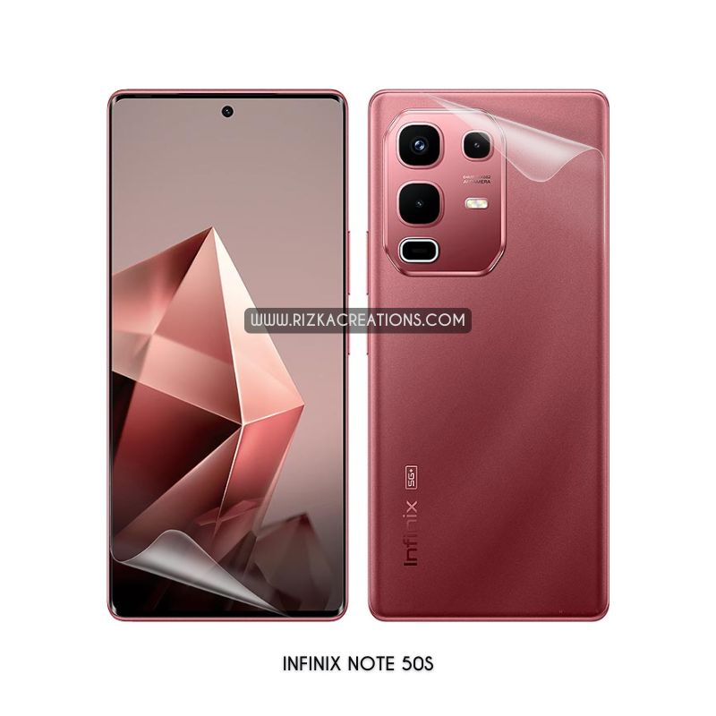 Premium Hydrogel Screen and Back Protector for Infinix Note 50s, available at rizkaCreations.com. Superior shock absorption, self-healing, and high touch sensitivity for long-lasting protection.