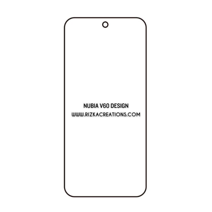 Premium Hydrogel screen and back protectors for Nubia V60 Design with 0.21mm front and 0.16mm back thickness. Offers self-healing, shock absorption, strong adhesion, and fingerprint unlock support. Available in clear/matte. Trusted protection from rizkaCreations.com with worldwide delivery.