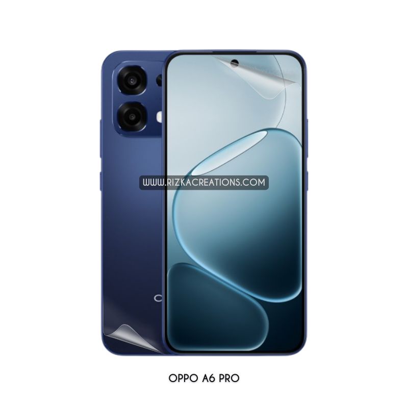Full-body protection for OPPO A6 Pro with Hydrogel Screen & Back Protector. Shock-absorbing, water- and dust-resistant, self-healing, and ultra-sensitive touch. Clear or matte options available. Order now at rizkaCreations.com for worldwide delivery.
