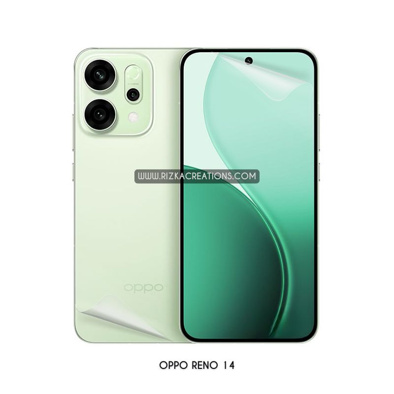 Slim, flexible Hydrogel Protectors for OPPO Reno 14 offer 0.21mm screen and 0.16mm back thickness with shock absorption, self-healing, and high touch sensitivity. Supports fingerprint unlock and available in clear and matte finishes. Worldwide delivery from rizkaCreations.com.