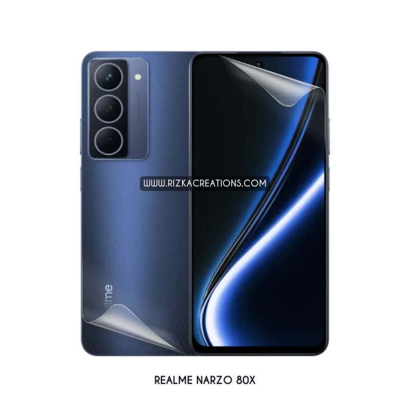 Protect your Realme Narzo 80x with premium Hydrogel Screen Protector and Back Protector from rizkaCreations.com. Offers superior shock absorption, fingerprint unlock support, and self-healing from scratches. Available in clear and matte finishes. Perfect fit, ultra-thin, and durable protection for long-term use.
