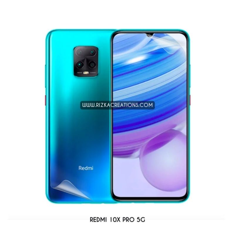 Premium Hydrogel screen and back protectors for Redmi 10X Pro 5G. Self-healing, shock-absorbing, 0.21mm front + 0.16mm back, fingerprint unlock supported. Matte and clear options available at rizkaCreations.com. Ships worldwide.