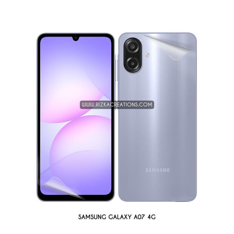 Protect your Samsung Galaxy A07 4G with premium Hydrogel Screen and Back Protectors from rizkaCreations.com. With 0.21mm front and 0.16mm back thickness, superior shock absorption, self-healing, high touch sensitivity, and clear or matte finishes, these protectors keep your phone safe, responsive, and scratch-free. Worldwide delivery available.