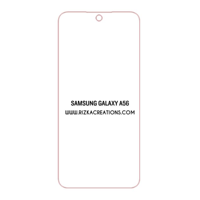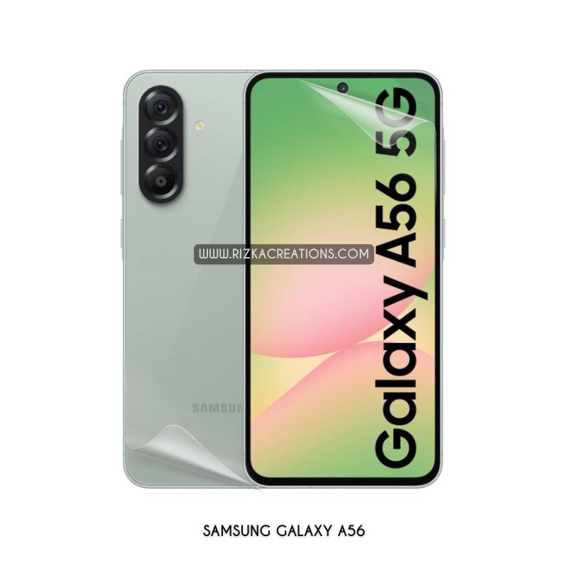 Protect your Samsung Galaxy A56 with ultra-thin, flexible Hydrogel screen and back protectors. Features 0.21mm screen and 0.16mm back thickness, shock absorption, self-healing, high touch sensitivity, and seamless fingerprint unlock. Available in matte or clear finish. Order now at rizkaCreations.com with worldwide delivery.