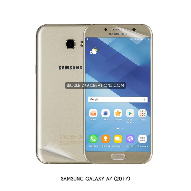 Protect your Samsung Galaxy A7 (2017) with ultra-thin, flexible Hydrogel screen and back protectors. Features 0.21mm screen and 0.16mm back thickness, shock absorption, self-healing, high touch sensitivity, and smooth fingerprint unlock. Available in matte or clear finish. Order now at rizkaCreations.com with worldwide delivery.