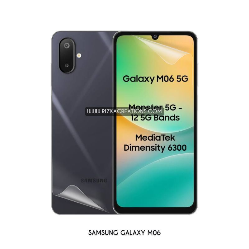 Protect your Samsung Galaxy M06 with ultra-thin, flexible Hydrogel screen and back protectors. Features 0.21mm screen and 0.16mm back thickness, shock absorption, self-healing, high touch sensitivity, and seamless fingerprint unlock. Available in matte or clear finish. Order now at rizkaCreations.com with worldwide delivery.