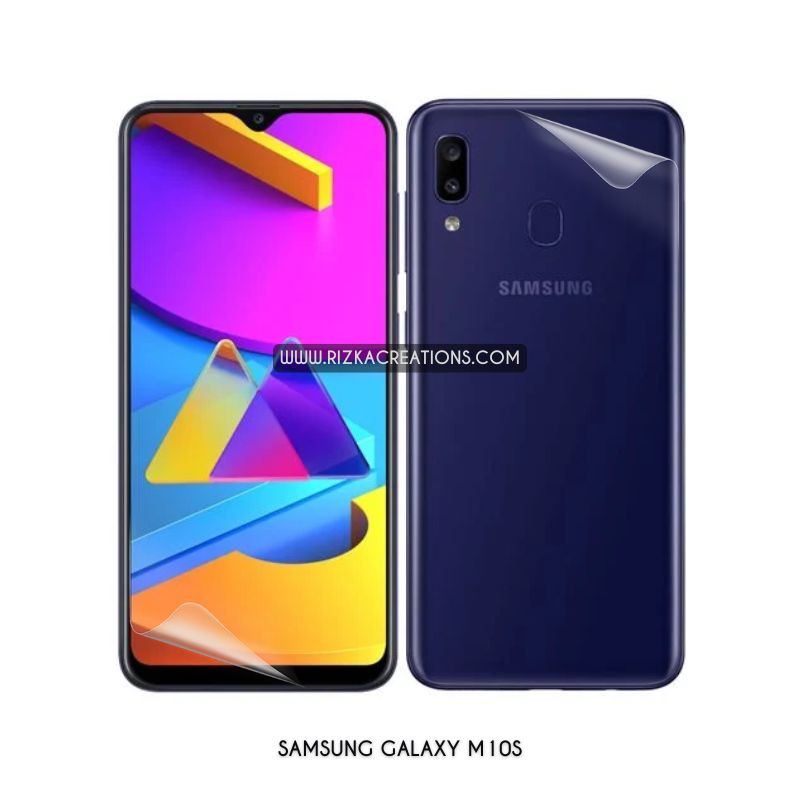 Experience reliable protection for your Samsung Galaxy M10s with our ultra-thin, flexible Hydrogel screen and back protectors. Offering 0.21mm screen and 0.16mm back thickness, plus shock absorption, self-healing, high touch sensitivity, and flawless fingerprint unlock. Available in matte and clear finishes. Shop now at rizkaCreations.com with worldwide delivery.