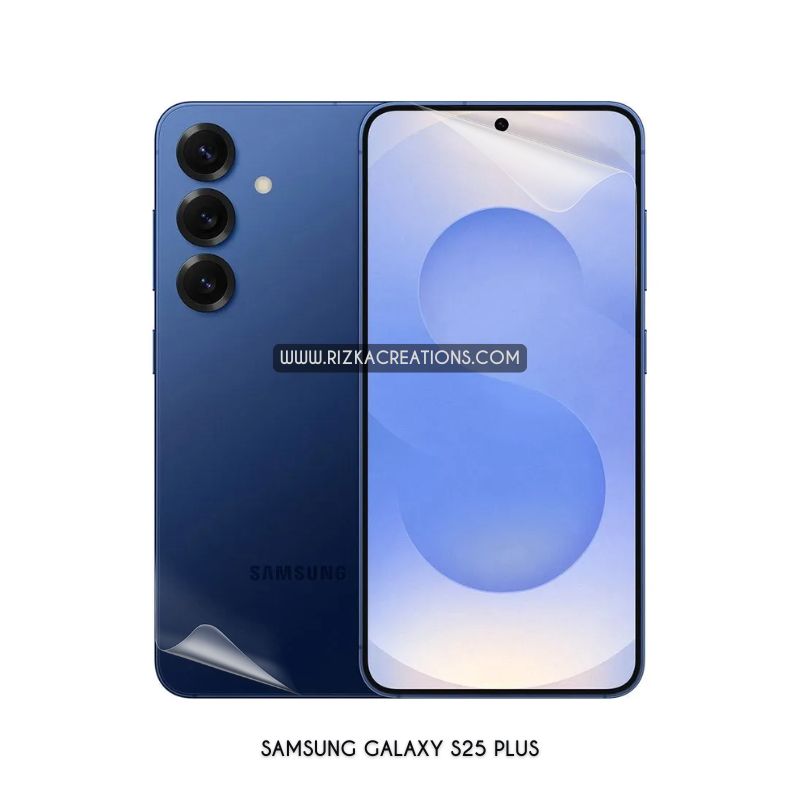 Protect your Samsung Galaxy S25 Plus with ultra-slim, flexible Hydrogel screen and back protectors. Featuring self-healing, shock absorption, 0.21mm screen + 0.16mm back thickness, smooth fingerprint unlock, and clear or matte finishes. Available now at rizkaCreations.com with worldwide delivery.