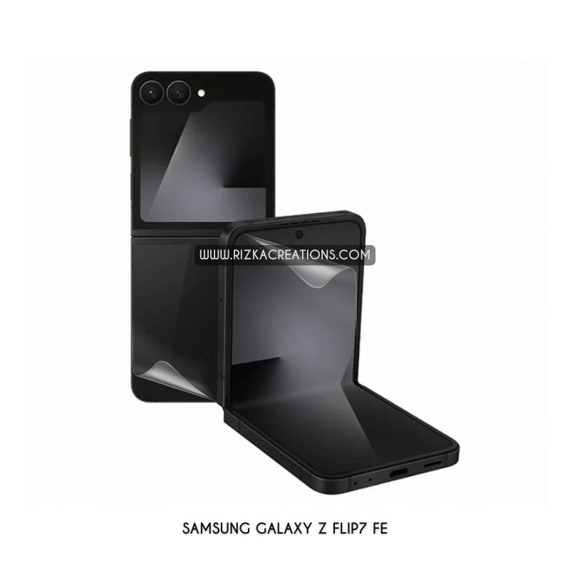Protect your Samsung Galaxy Z Flip 7 FE with ultra-flexible Hydrogel screen and back protectors. Features 0.21mm screen and 0.16mm back thickness, self-healing, shock absorption, high touch sensitivity, and smooth fingerprint unlock. Choose clear or matte finish. Available now on rizkaCreations.com with worldwide delivery.