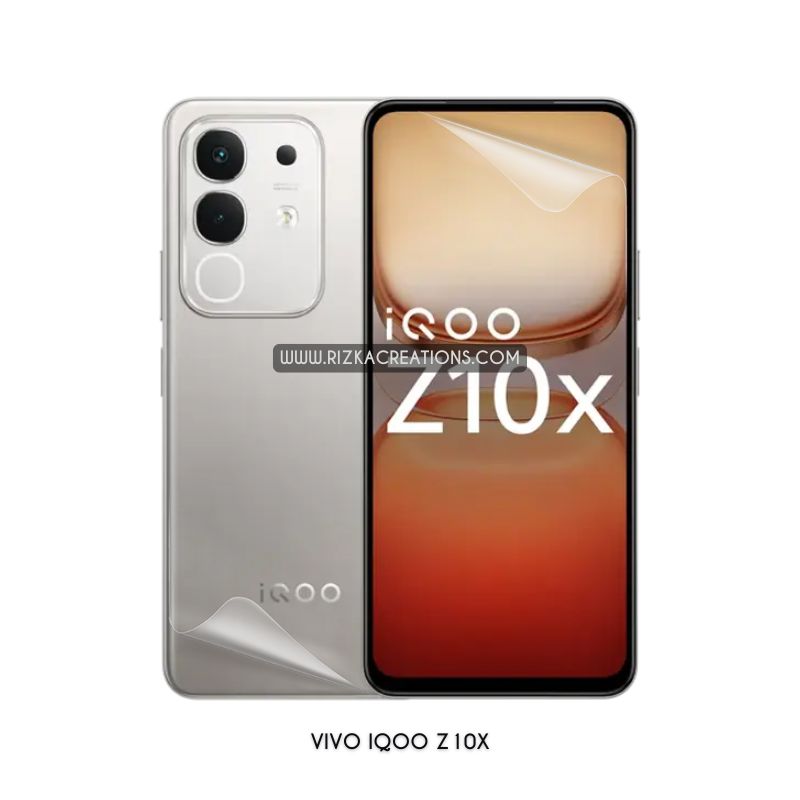 Premium Hydrogel Screen and Back Protectors for VIVO iQOO Z10x. Designed for full coverage, shock absorption, and smooth touch. Available now at rizkaCreations.com.