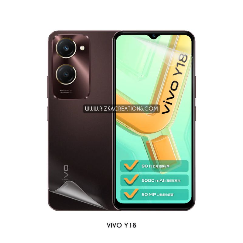 Protect your VIVO Y18 with custom-fit Hydrogel Screen and Back Protectors from rizkaCreations.com. Offering superior shock absorption, self-healing, and high touch sensitivity. Available in Clear and Matte finishes for durable, flexible protection tailored to your device.