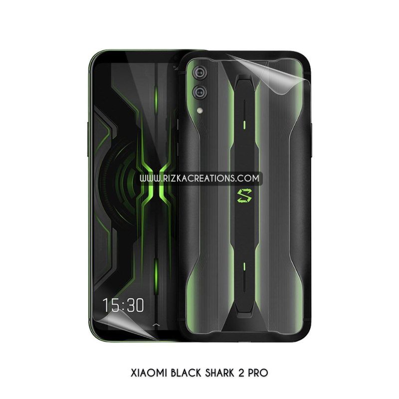 Premium, self-healing Hydrogel screen and back protectors for Xiaomi Black Shark 2 Pro with shock absorption and fingerprint unlock support. Available at rizkaCreations.com, worldwide shipping.