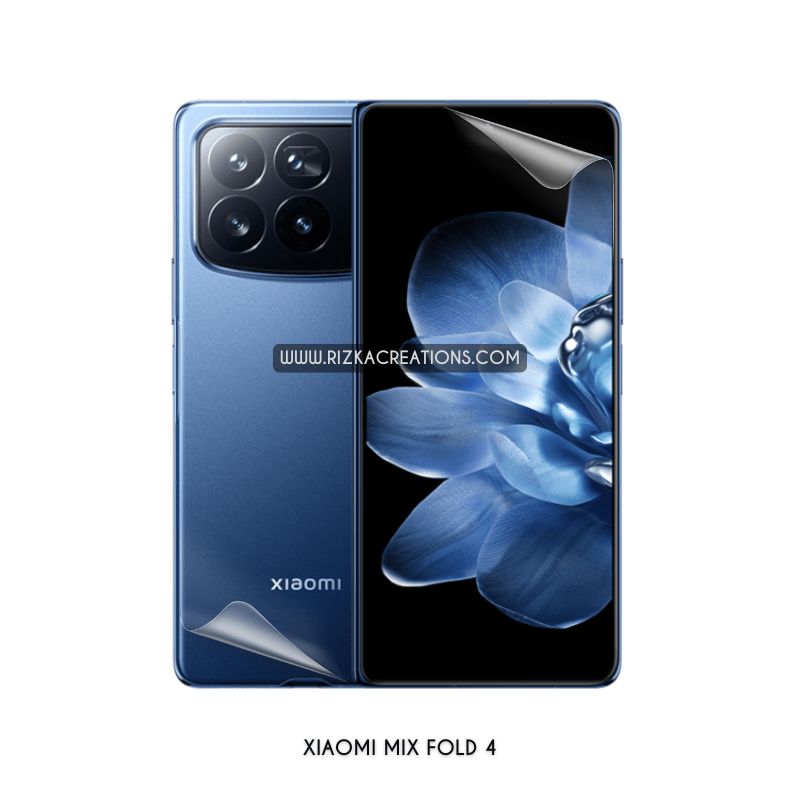 Hydrogel screen and back protector for Xiaomi Mix Fold 4 from rizkaCreations.com. Flexible, ultra-thin 0.21mm front and 0.16mm back protection, shock-absorbing, self-healing, fingerprint unlock compatible. Clear and matte finishes. Ships worldwide.